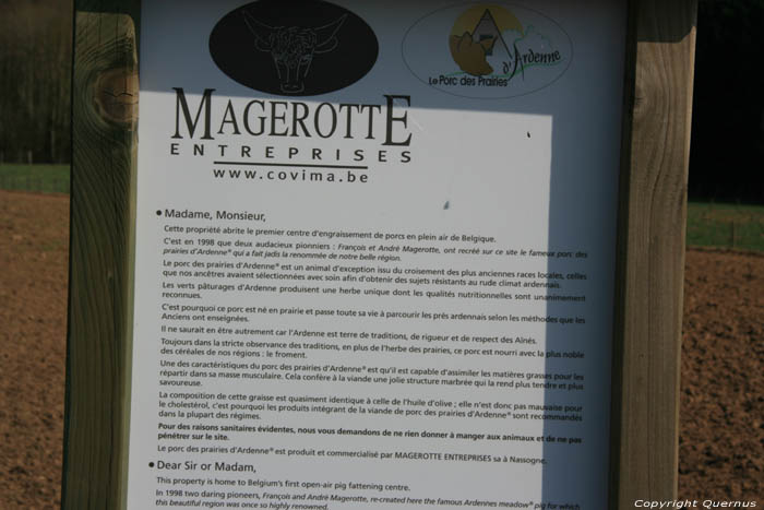 Hoeve van Magerotte. Dit is de eerste openluchtvarkensmesterij van België. Ze werd door de gebroeders Magerotte opgericht in 1998.